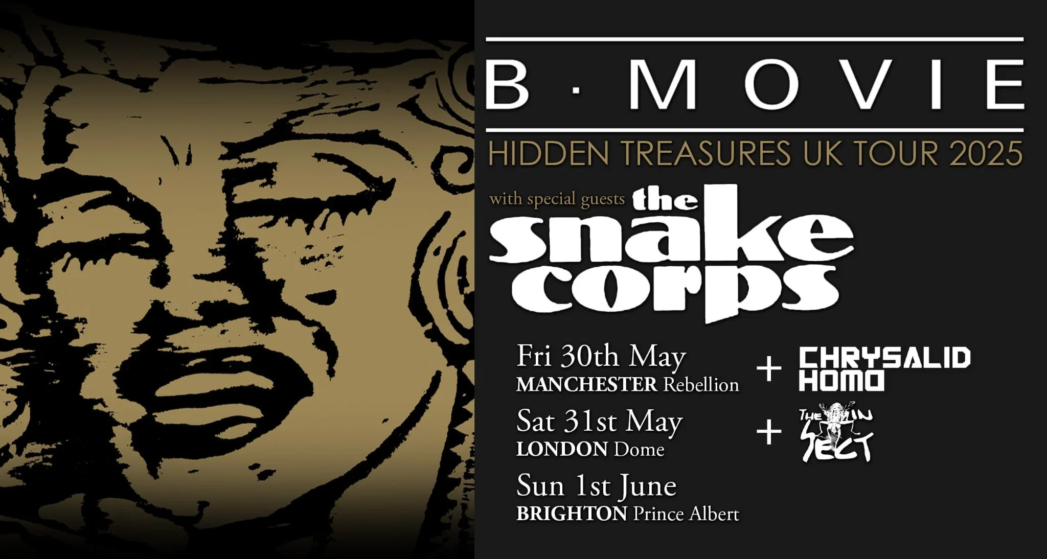 Recorded in Manchester, London and Brighton in May/June 2025, this live album documents The Snake Corps on a short UK tour with B-Movie. The final night of the tour in Brighton saw a packed room at The Prince Albert, with The Snake Corps delivering a 50-minute set — a reminder of the band’s enduring cult following. — Brighton & Hove News, June 2025